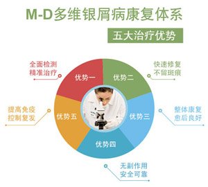 M-D多维银屑病康复体系从源头起效,阻断皮损形成机制,抑制病变细胞分裂复制,快速恢复细胞正常功能,迅速修复皮损各项症状,愈后不留斑痕。